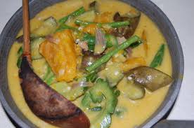 For vegetarians, there is dinengdeng, a dish consisting of moringa leaves (malunggay) and slices of bittermelon. There is also pinakbet, stewed vegetables heavily flavored with bagoong. A type of seafood salad known as kinilaw is made up of raw seafood such as fish or shrimp cooked only by steeping in local vinegar, sometimes with coconut milk, onions, spices and other local ingredients. It is comparable to the Peruvian ceviche.